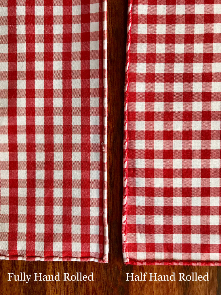 American-Grown SUPIMA® cotton. Woven in Italy and sewn by Italian artisans in the Eternal City of Rome. Hand-sewn edges make each Pocket Square unique. Cardinal Red Gingham pattern.